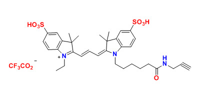 各種花青3(Cy3)染料已用于標(biāo)記生物分子,用于熒光成像和其他基于熒光的生化分析。它們廣泛用于標(biāo)記肽,蛋白質(zhì)和寡核苷酸等。Cy3染料在與蛋白質(zhì)結(jié)合后熒光大幅度增加。Cy3炔烴選擇性地與疊氮基團反應(yīng)。
